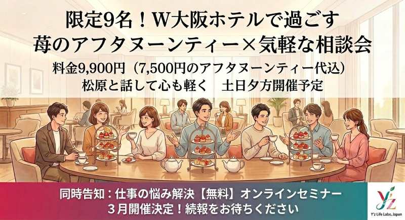 この度、特別な空間で美味しいスイーツや軽食を楽しみながら、日常のちょっとしたモヤモヤをお話しいただける特別なお茶会を開催することになりました。